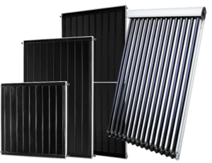 As placas de aquecimento solar, instaladas estrategicamente no telhado. Elas absorvem a radiação solar e transformam em calor, transferindo-o para água que circula pelas placas e, por sua vez, aquecem a água armazenada no boiler.